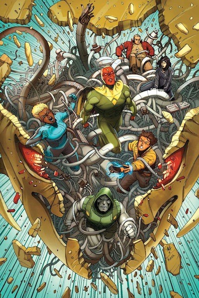 The triumph of Hank Pym turns to tragedy for the human race...an unfathomable Pandora's Box of destruction! When a brave new world is unleashed, only one team of Earth's Mightiest Heroes can save us from the future - AVENGERS A.I.! THE VISION! HANK PYM! VICTOR MANCHA! DOOMBOT! The mysterious ALEXIS! MONICA CH...